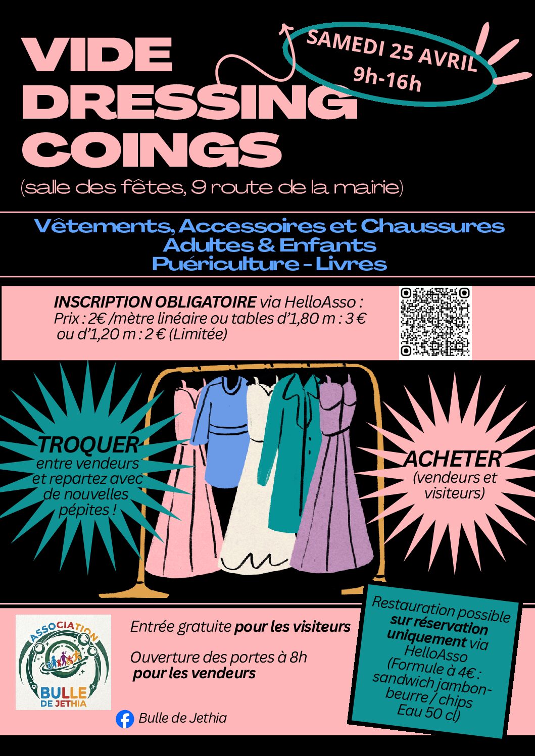 L'association Bulle de Jethia organise un vide dressing à la salle des fêtes de Coings !