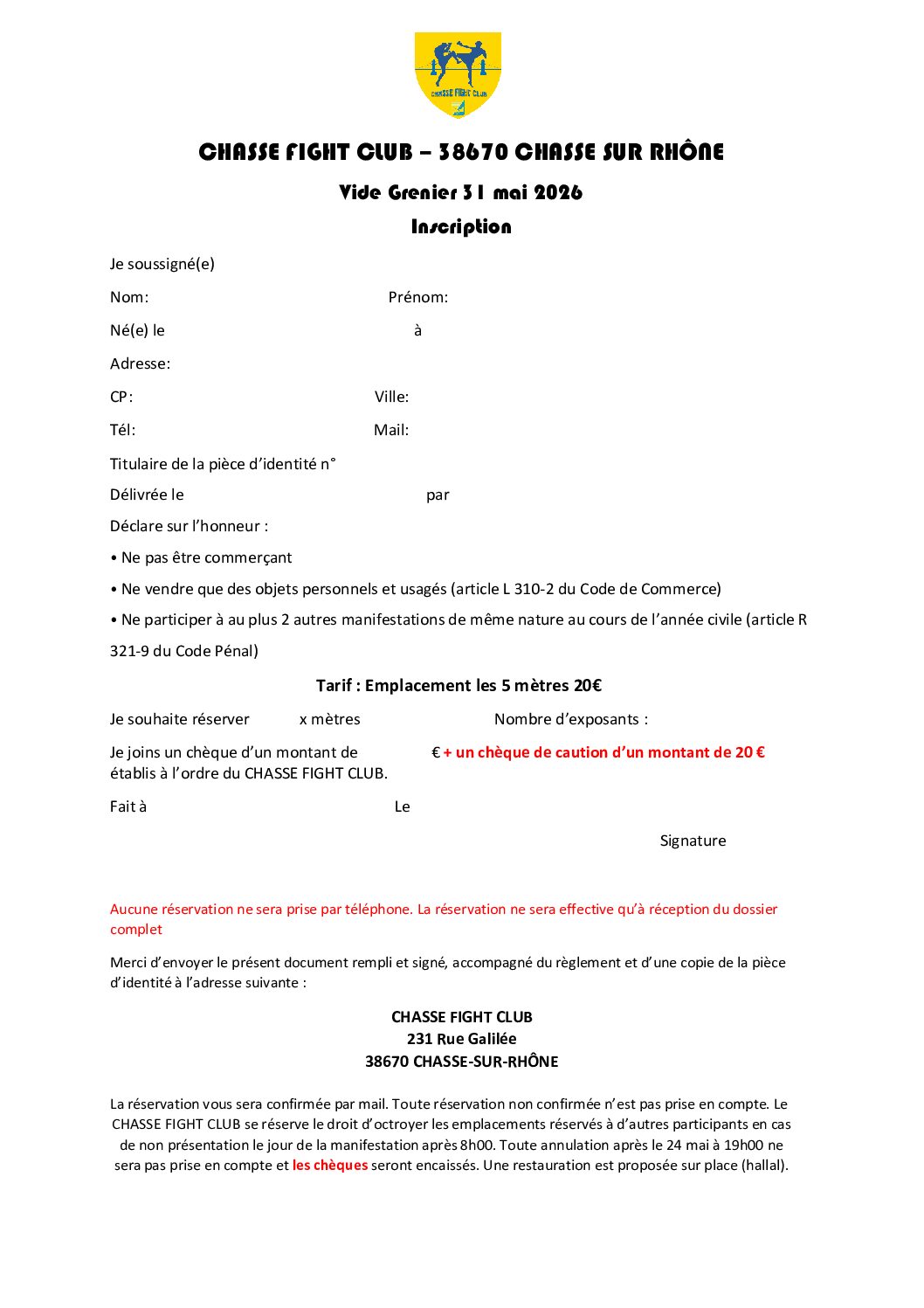 Inscription obligatoire avec forfaits de 5 mètres à 20 euros (possibilité d'en prendre plusieurs)
