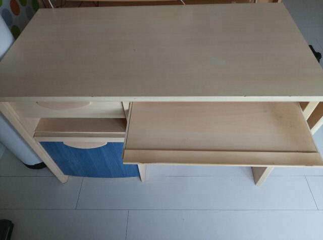 Vous y trouverez un échafaudage, des bureaux, des chaises de bureaux, des outils de bricolage, des luminaires, des draps, du tissus, des livres, des vêtements...