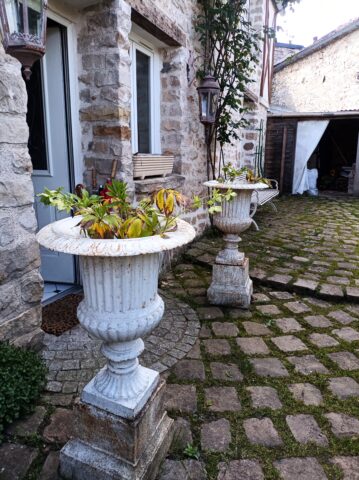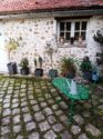 DANS LA COUR: Salon de jardin 6 places, Médicis en Fonte, Banc de jardin, Brocante et bibelots divers